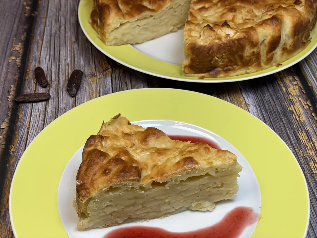 Dieser Apfelkuchen ist die perfekte Mischung aus saftigen Äpfeln und einem zarten Teig, der mit Joghurt besonders cremig wird. Die dünn gehobelten Äpfel verleihen dem Kuchen eine angenehme Textur, während die Tonkabohne für eine vanilleähnliche Note sorgt. Der Kuchen ist fruchtig, leicht – ideal für alle, die es lieber weniger süß, dafür aber umso aromatischer mögen.