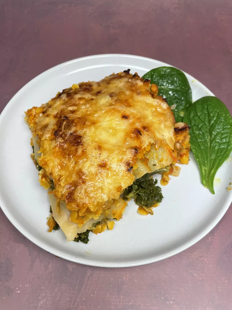 Diese Grünkohl-Lasagne ist eine herzhafte und gesunde Variante des klassischen italienischen Gerichts, die mit den Aromen des Winters verführt. Der kräftige Grünkohl trifft auf eine aromatische Tomaten-Linsen-Sauce. Abgerundet wird das Ganze mit einer köstlichen Schicht geschmolzenem Bergkäse, der die Lasagne im Ofen perfekt überzieht. Diese Lasagne ist ein ideales Comfort Food für kalte Tage und bringt Wohlbefinden auf den Teller.