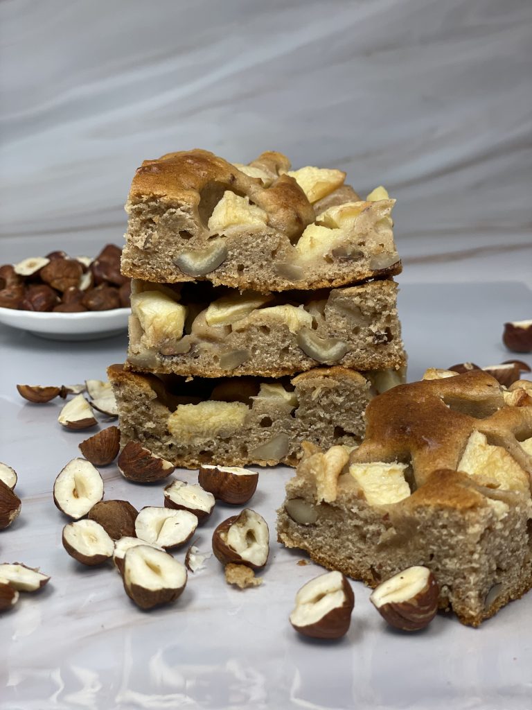 Apfelkuchen geht immer. Daher gibt es heute einen Kuchen mit Apfel und Haselnüssen. Verwendet werden sowohl gehackte Nüsse als auch Nussmus. Also Nuss pur. Wer keine Haselnüsse mag, kann natürlich auch Walnüsse oder andere Nüsse nehmen.